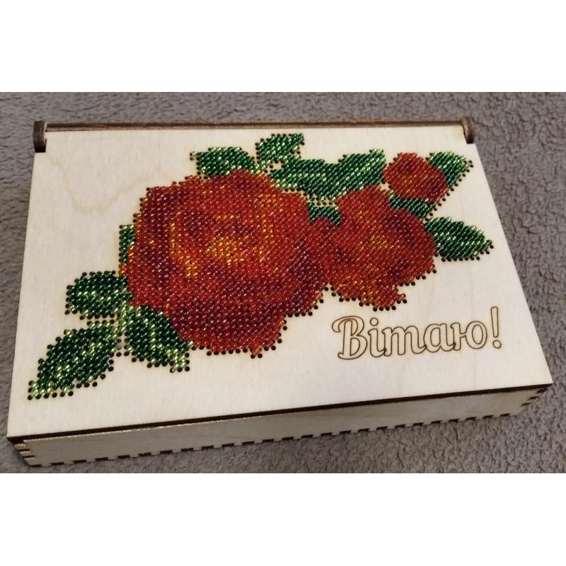 Деревянная подарочная коробочка-ящик для денег вышитая бисером